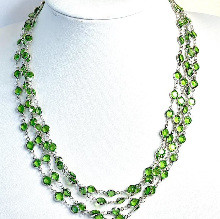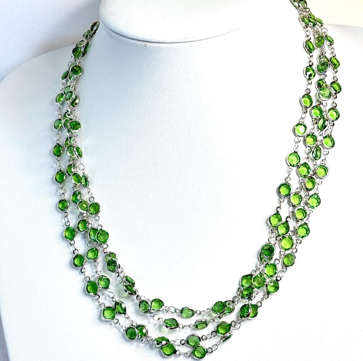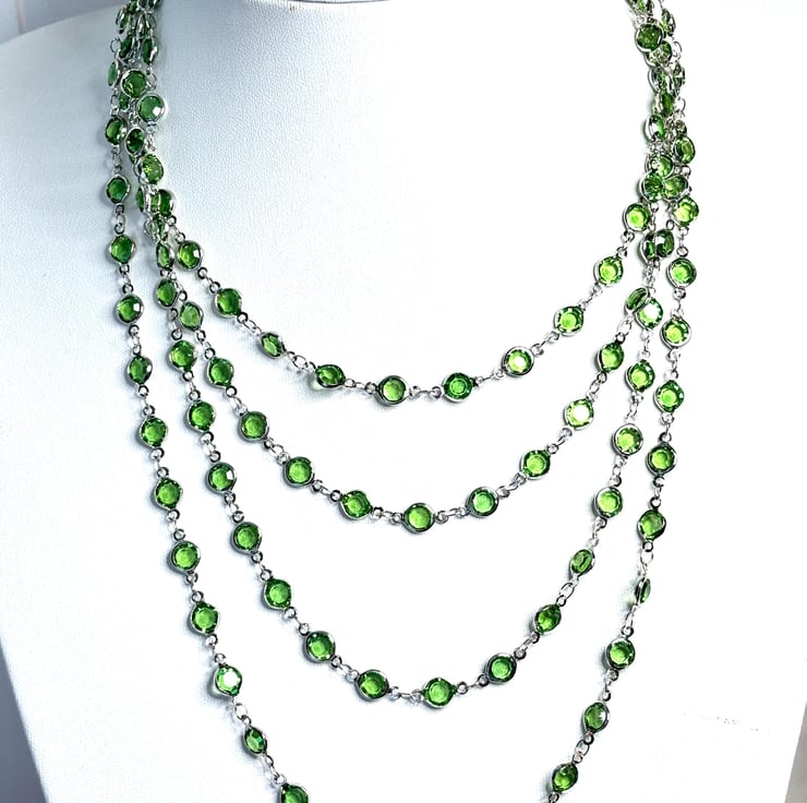 Extra Long Peridot Green Round CZ Crystal Necklace - Silver Tone - 78 or 40 Inches