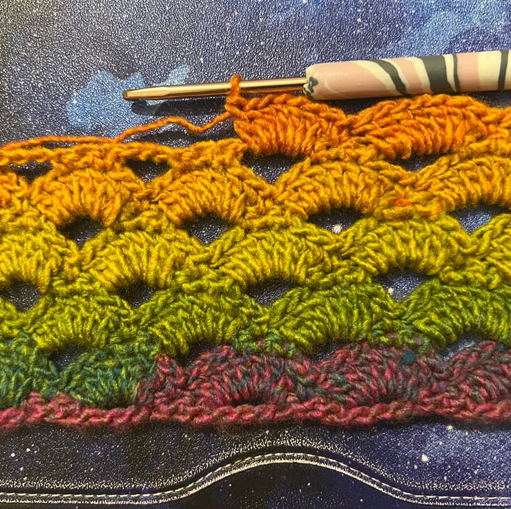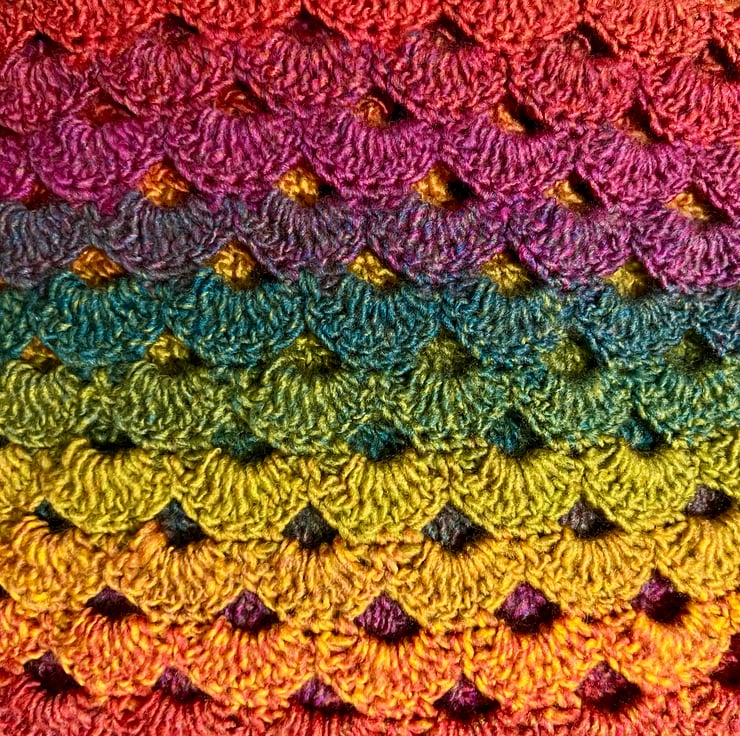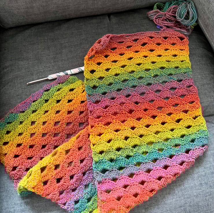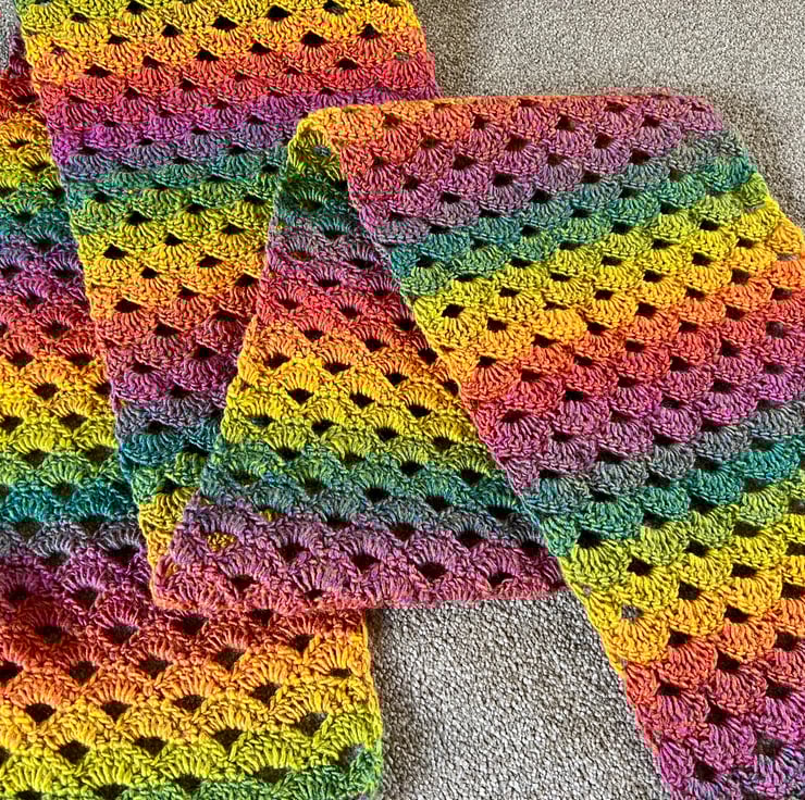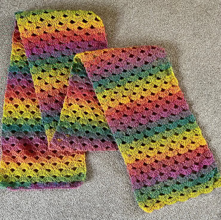 Crocheted Rainbow Shell Scarf