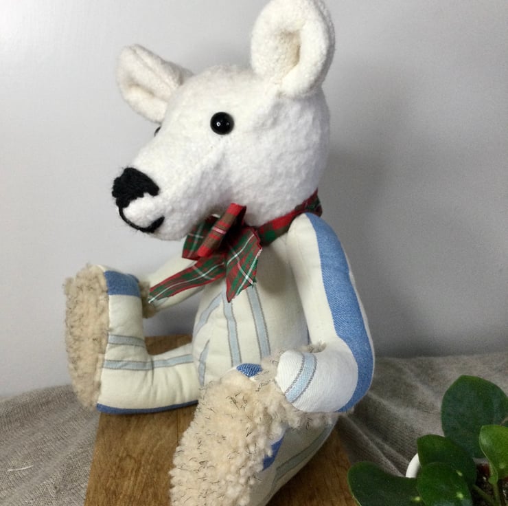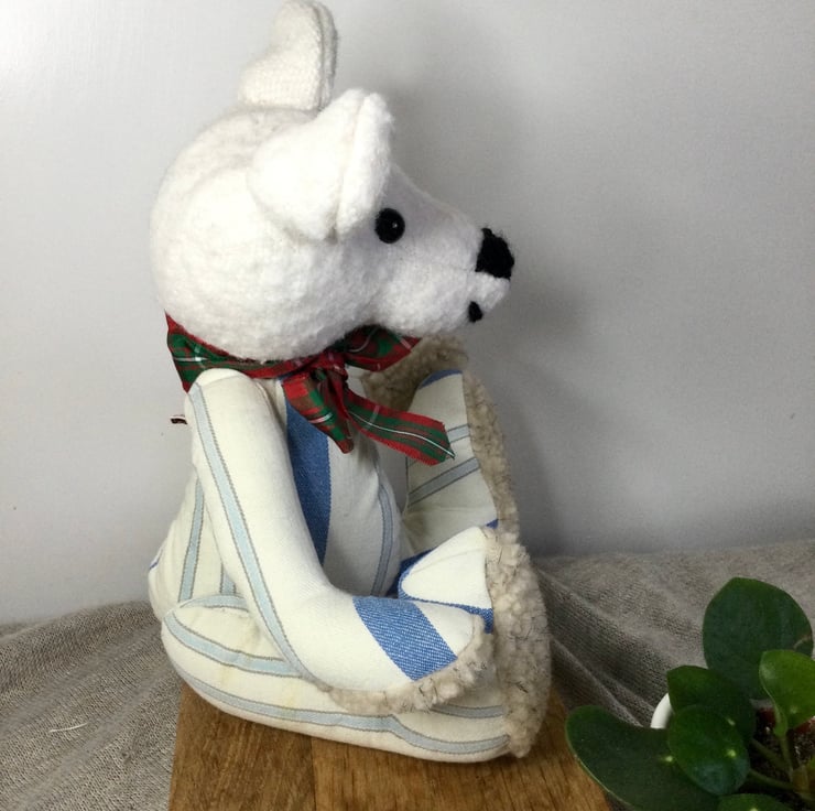 Greg was inspired by a love of storytelling and scraps too beautiful to discard. I imagined him as a well-travelled companion with a proud name and a soft heart, crafted for collectors who appreciate eco-friendly, characterful creations.