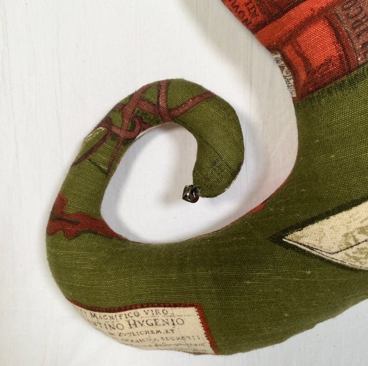 The cuff is made from buff coloured upholstery fabric with leaf motif.