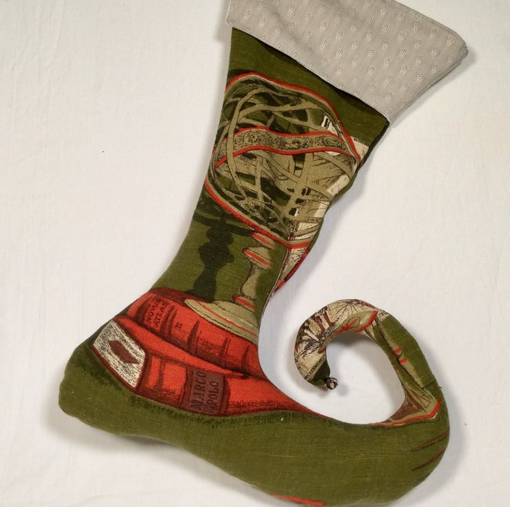 Fabric gift wrapping gift holder. Wedding gift wrapping. Jester s Boot Stocking