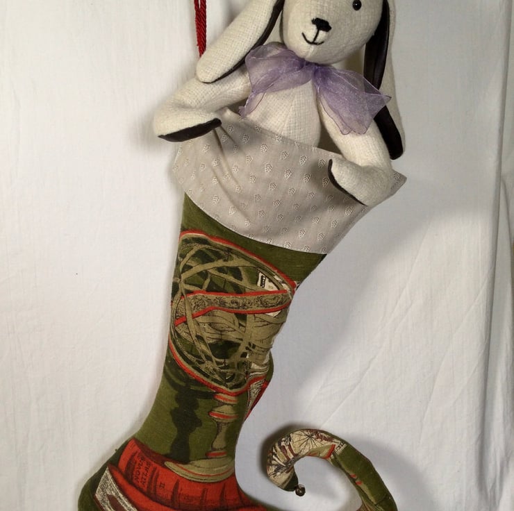 Bring a playful twist to gift-giving with this handmade jester-style stocking, crafted in the UK from reclaimed and recycled fabrics.