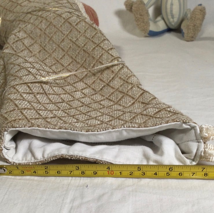 The shoe is stuffed so the storage gifting space inside the leg measures approx. 34cm deep x 17cm across the open when closed, 13cm when open.