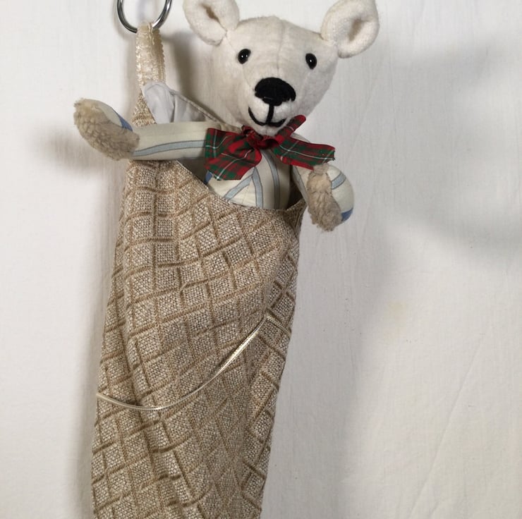 Shaped like a classic ballet shoe, this charming stocking is perfect for holding a special small gift — a beautiful blend of elegance, nostalgia, and eco-friendly craftsmanship.