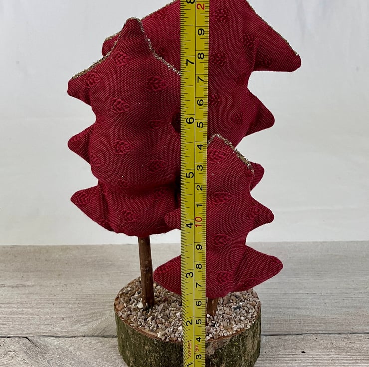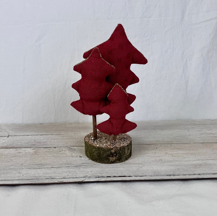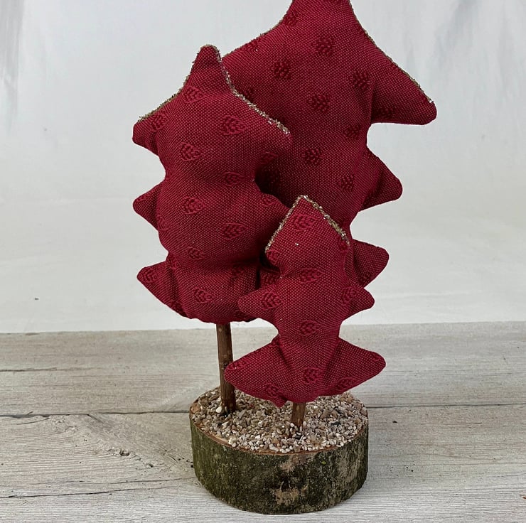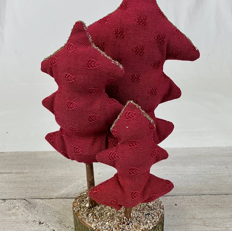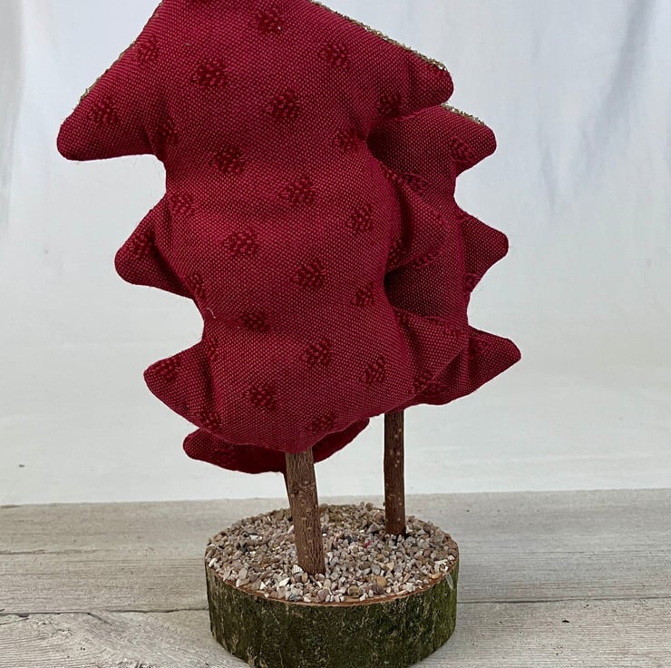 Add a splash of festive cheer with this charming little Christmas tree ornament, handmade in the UK from red recycled fabric and reclaimed trimmings.