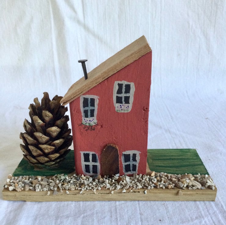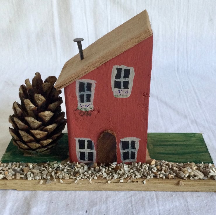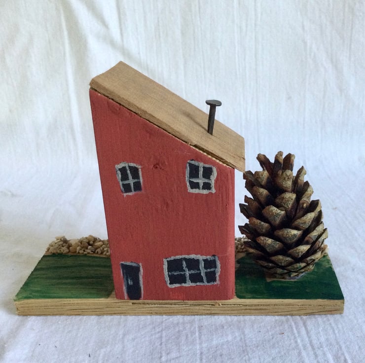 I started making these tiny houses to give new life to the scrap wood I couldn’t bear to waste. The red paint? A nod to storybook cottages and Scandinavian simplicity. Each one is a joyful little rebellion against throwaway culture—tiny proof that small things can still spark big smiles.