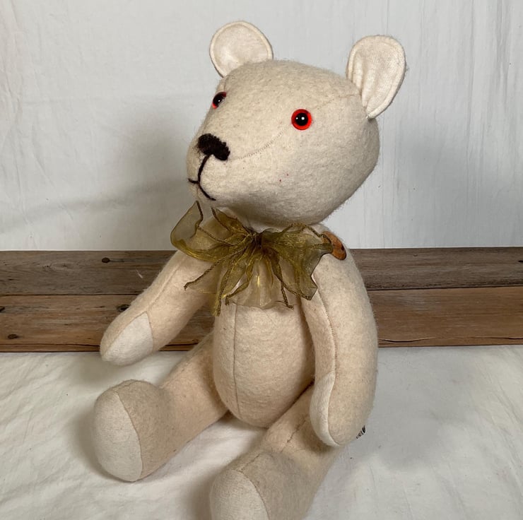 Big Ted was inspired by a love for the well-worn and well-loved. I wanted to create a bear that felt like a hug from a time gone by—crafted from salvaged fabric that already carries its own quiet history. He’s a celebration of memory, comfort, and second chances.