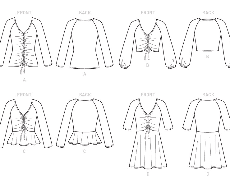 This is a lovely dressmaking pattern by McCalls for stretch knits, to make a close fitting dress or top with lovely ruching at the front. there are variations for sleeve styles as well as the length of the top/dress.