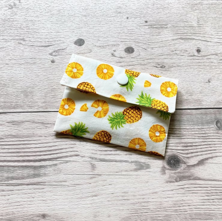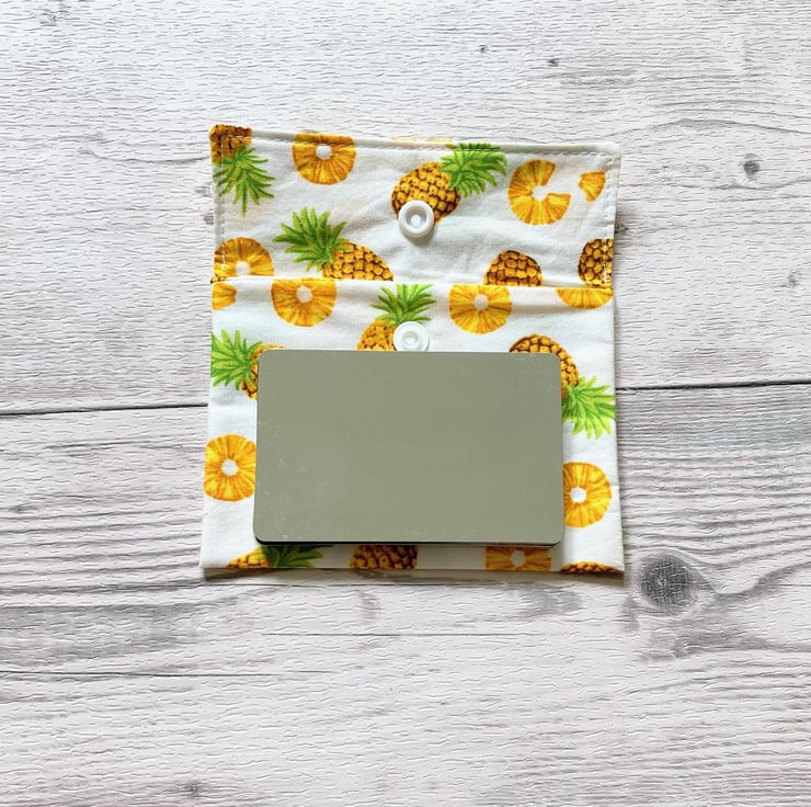 Pineapples cotton fabric card holder pouch. Loyalty, credit, debit cards purse.