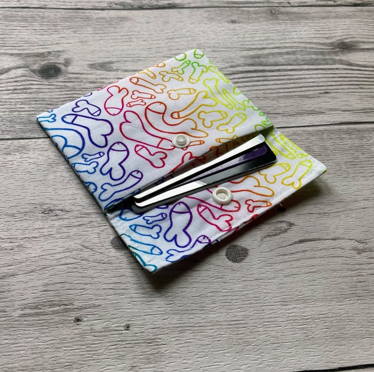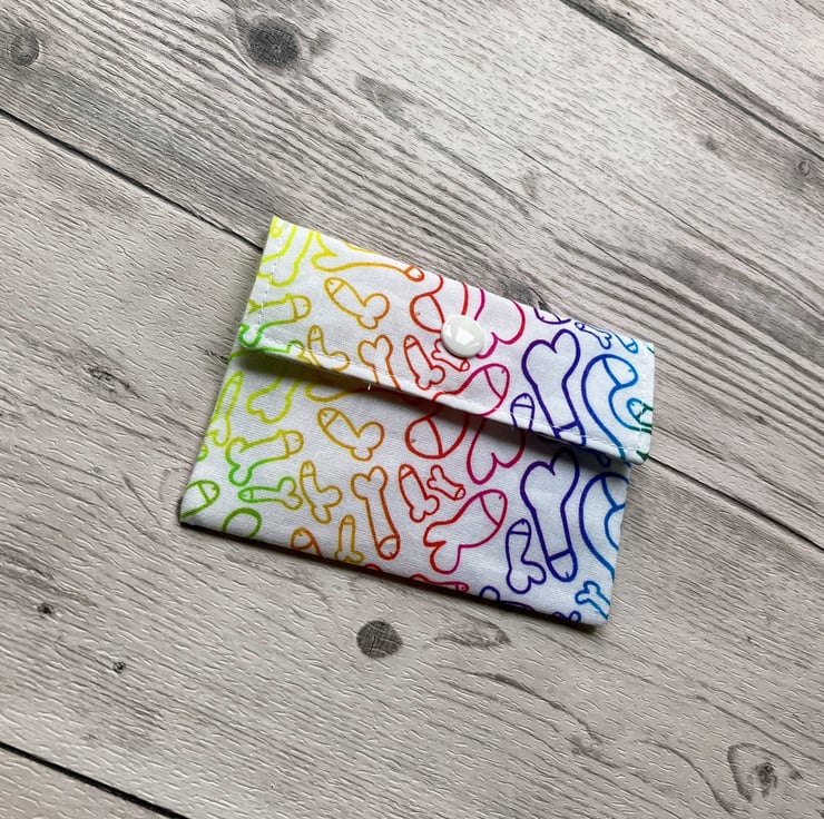 Fun willy themed fabric card holder pouch. Loyalty, credit, debit cards purse.