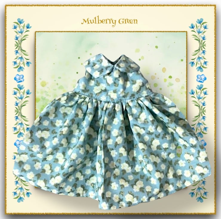 A beautiful little dress in a really lovely gold etched turquoise floral print, to fit the Mulberry Green characters.