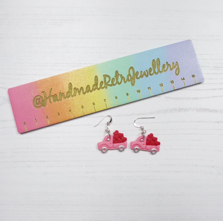 Mini trucks with hearts Valentine's earrings CHOOSE YOUR COLOUR