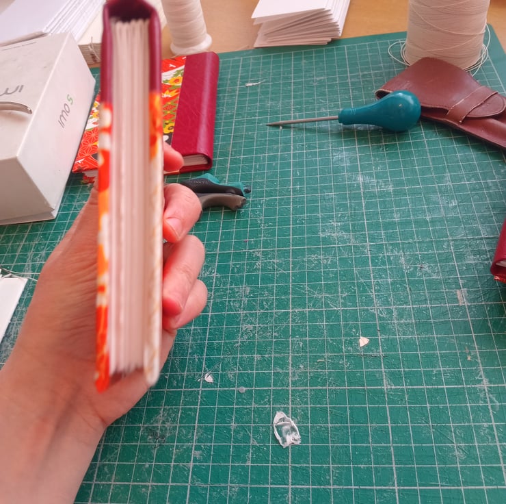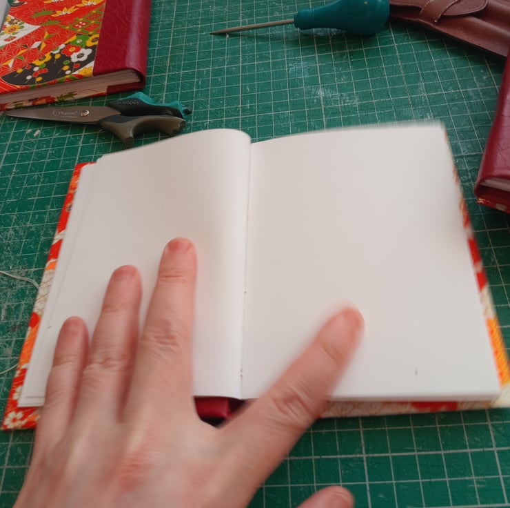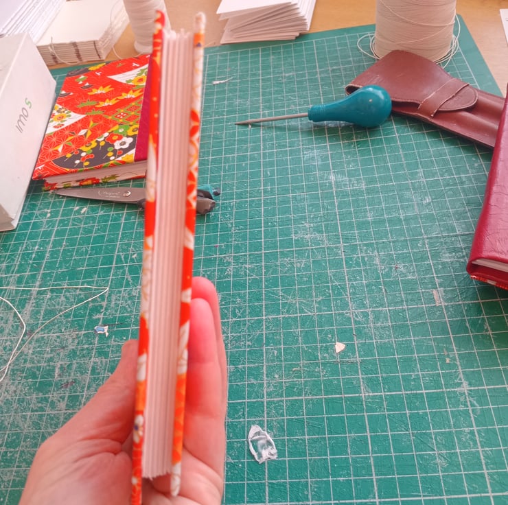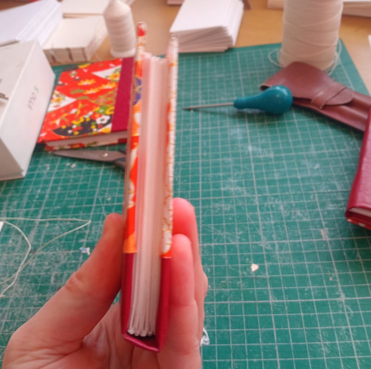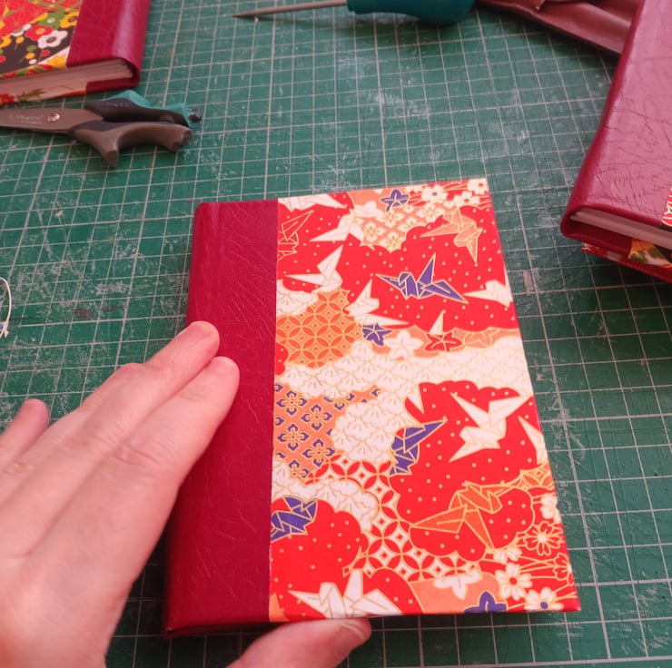 Slim notebook. Cartridge paper inside, Japanese pattern hardcover cover, sewn with linen thread