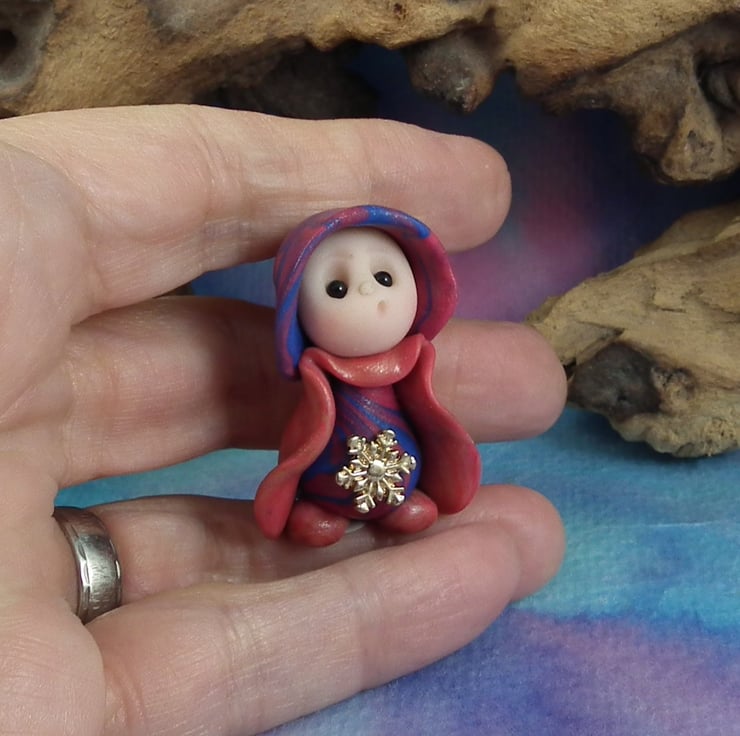 This is a 'one of a kind' creation having been entirely handmade without the use of moulds here at my studio on the Sussex Coast. Modelled with artist blend polymers, blushed before sealing with lacquer, Sophie has sparkling black onyx eyes and garden robes. Sophie the Garden Gnome is just one and a half inches tall.