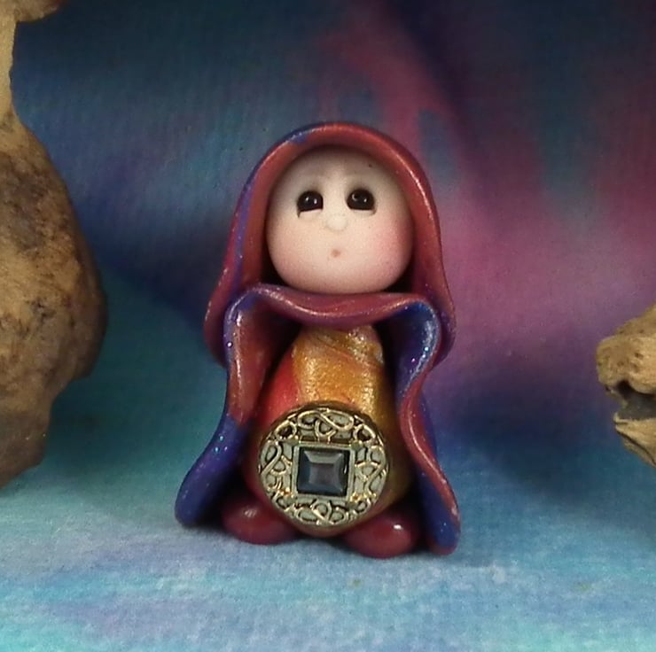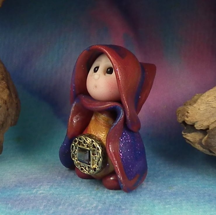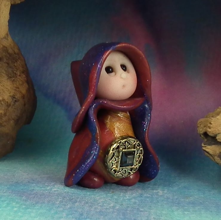 This is a 'one of a kind' creation having been entirely handmade without the use of moulds here at my studio on the Sussex Coast. Modelled with artist blend polymers, blushed before sealing with lacquer, Addy has sparkling black onyx eyes and garden robes. Addy the Garden Gnome is just one and a half inches tall.