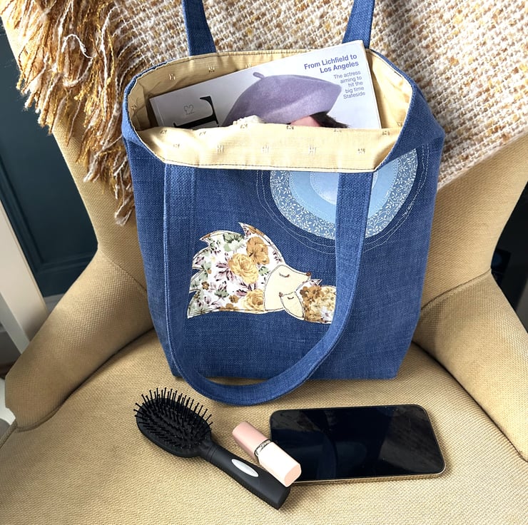 This lovely and versatile tote bag could be used for a variety of occasions. With its cute appliqué design, it would make a lovely gift for anyone who loves hedgehogs.