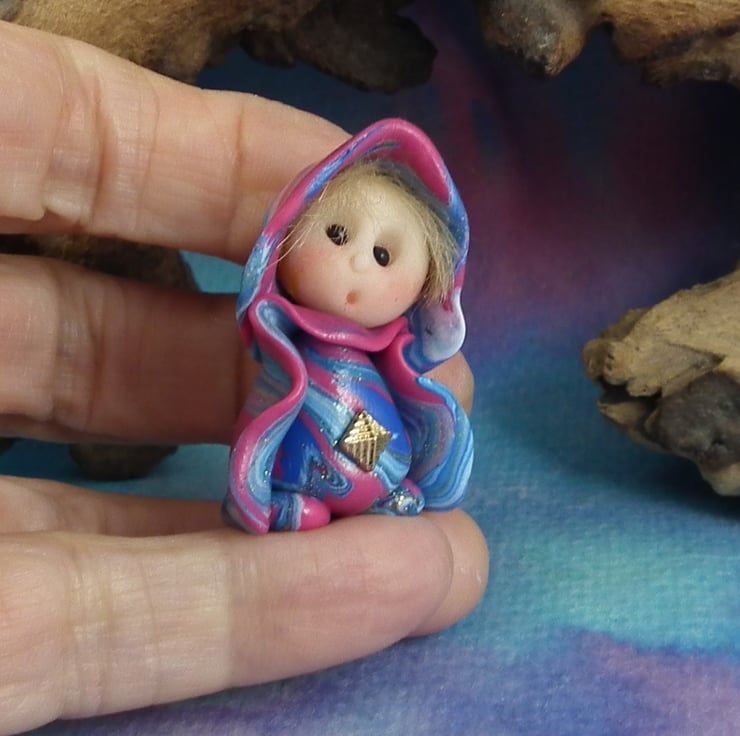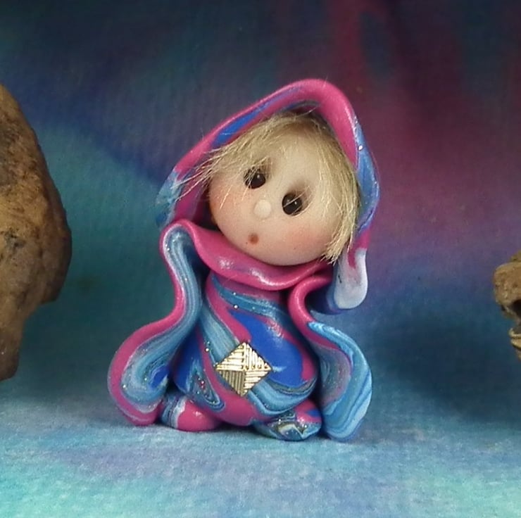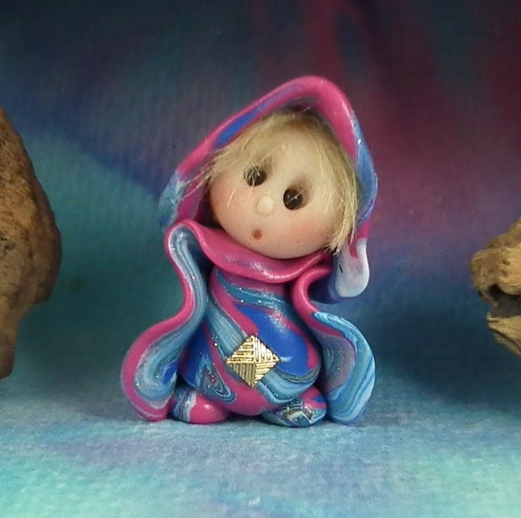 This is a 'one of a kind' creation having been entirely handmade without the use of moulds here at my studio on the Sussex Coast. Modelled with artist blend polymers, blushed before sealing with lacquer, Cass has sparkling black onyx eyes and garden robes. Cass the Garden Gnome is just one and a half inches tall.