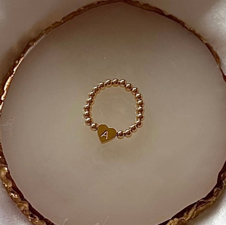 Handmade beaded ring made with 3mm gold filled or sterling silver beads which are tarnishproof and water resistant. Finished with stainless steel engraved heart bead. This ring will make a gorgeous personal gift for a loved one, friend or yourself.