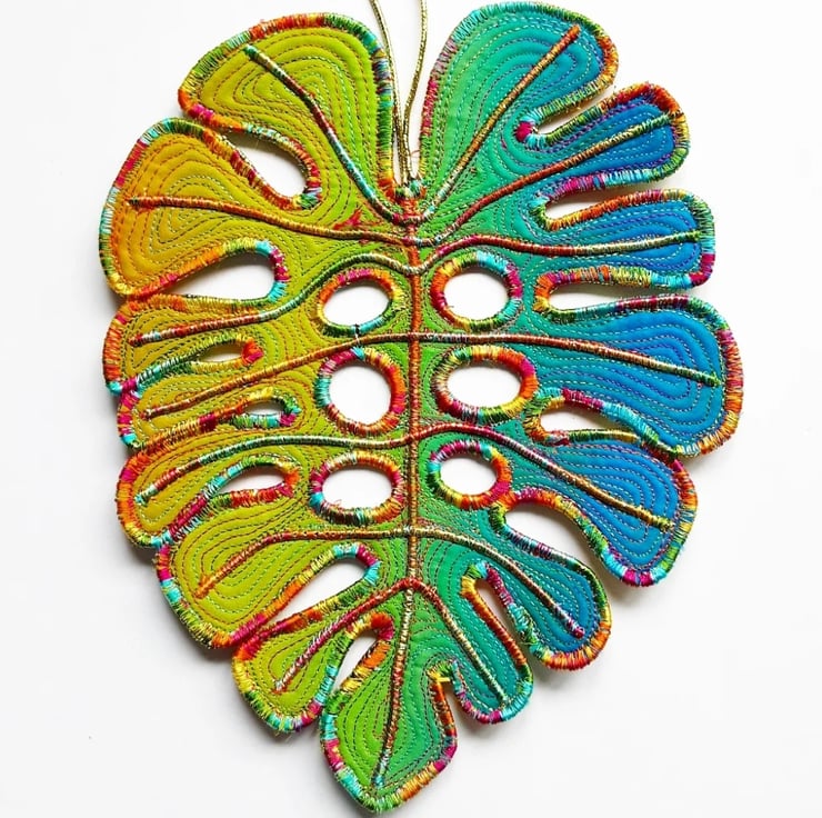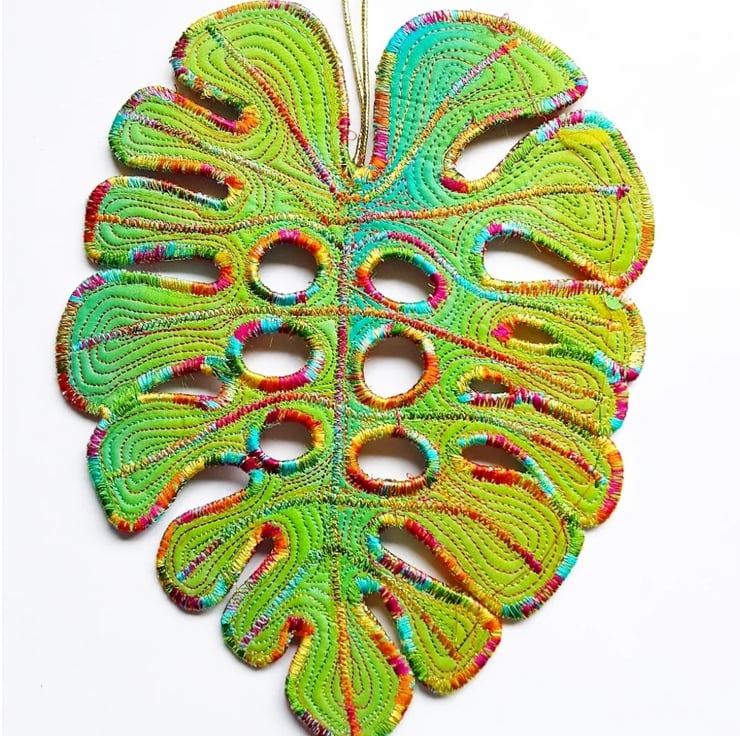 Made from Egyptian cotton and free machine embroidery. It has a gold loop to hang it from.