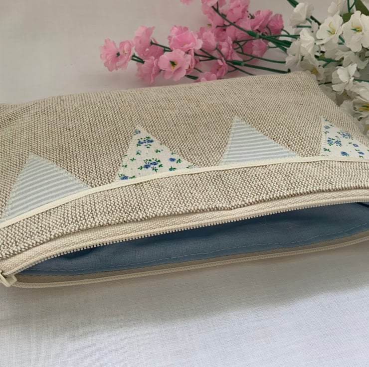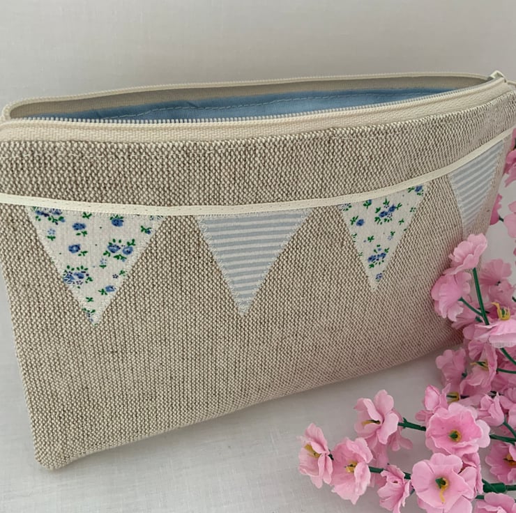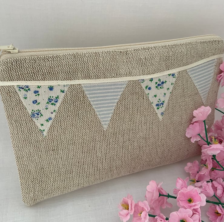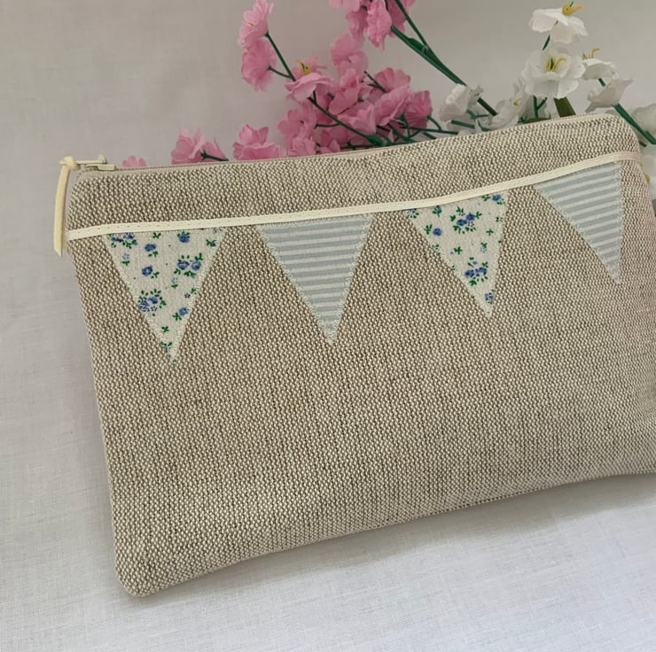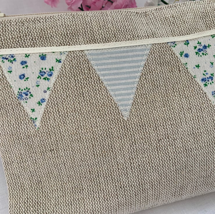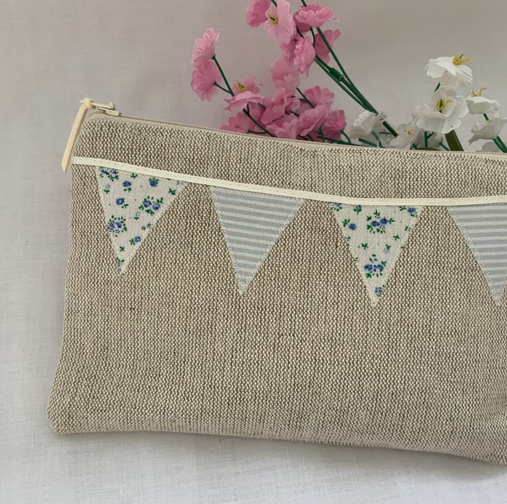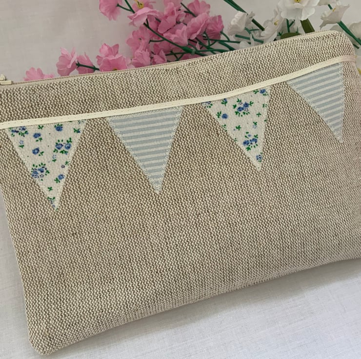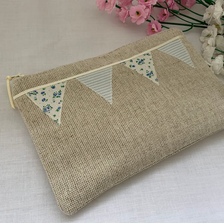 Beautiful linen purse with my own designed, hand cut applique bunting design,