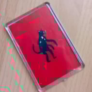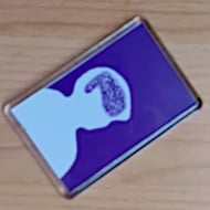 Manufactured from clear acrylic with a clear acrylic back and metal pin.