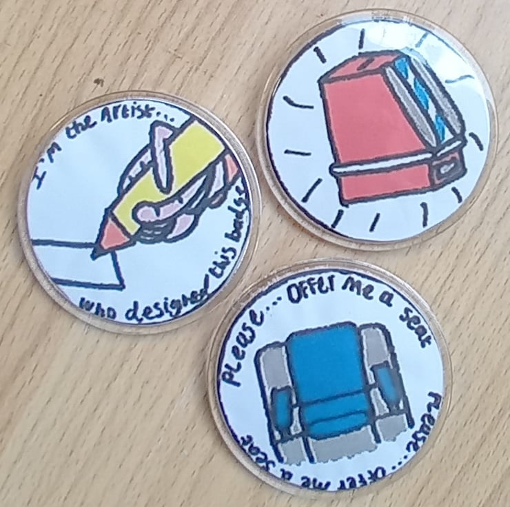 Handmade from my original Felt Pen Illustration and has been reproduced on a 55mm badge which has been hand assembaled in my studio.