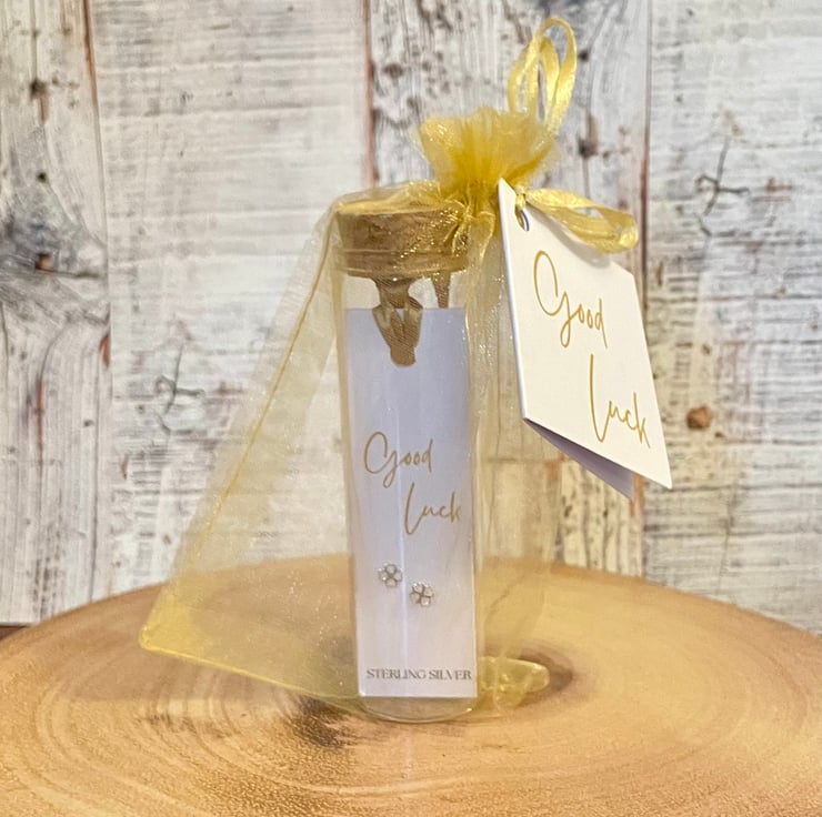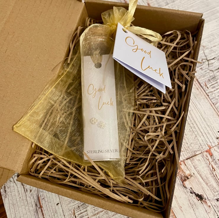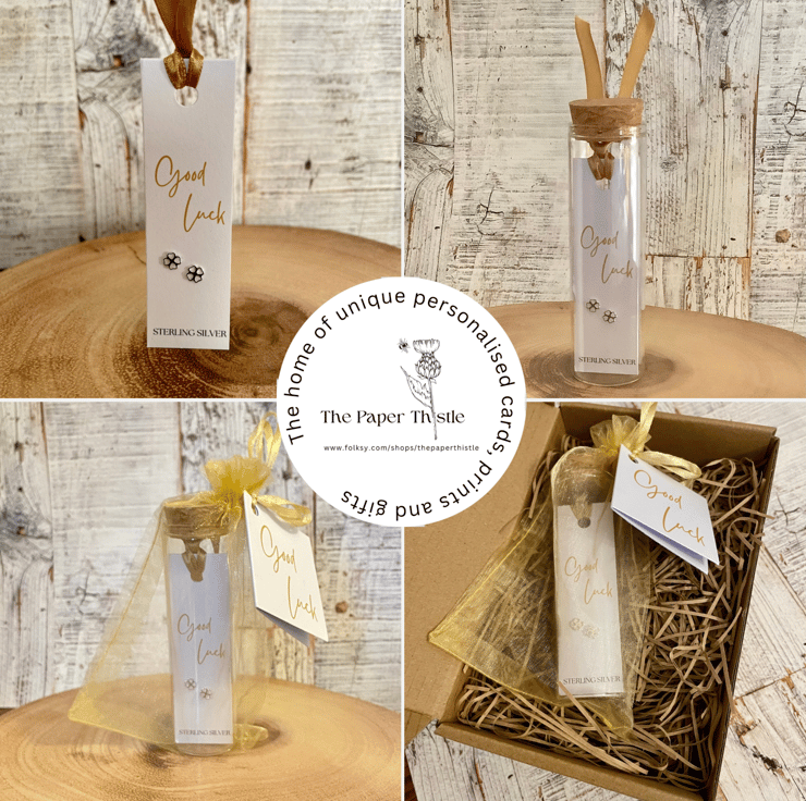 The special message with these earrings is: 'good luck’, these words can be changed to create your own message. a lovely gift to say thank you, for a birthday, anniversary, Mother's Day or Valentine's Day. Great to give friends, bridesmaids, sisters, mothers or daughters.