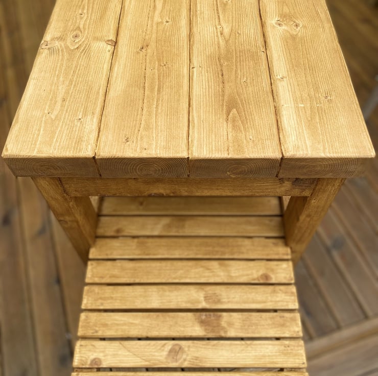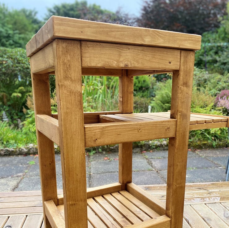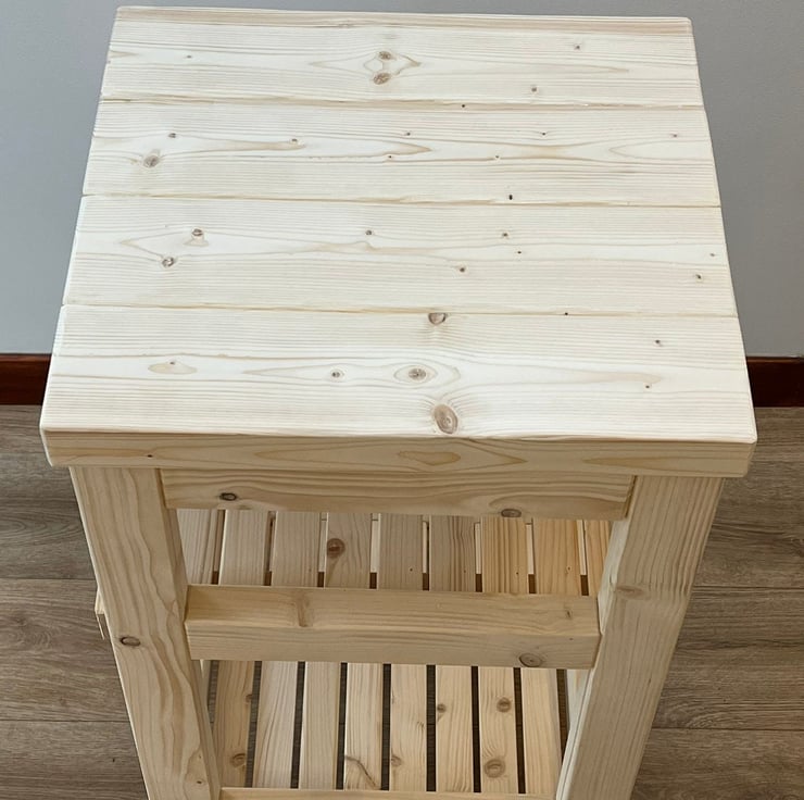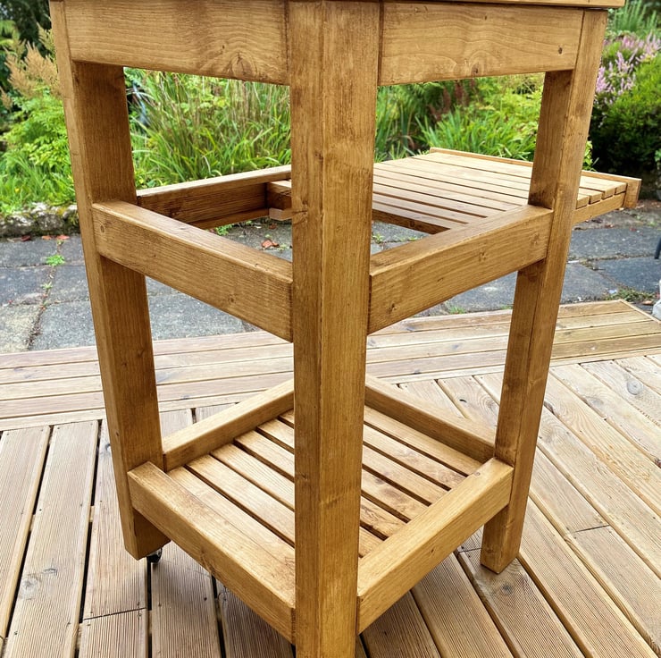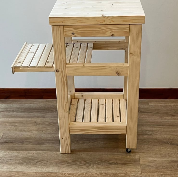 Standout, handmade kitchen trolley crafted from new and sustainable pine wood. Includes a sliding shelf for those looking for a versatile and efficient kitchen feature, and two castors fitted on the rear for easy mobility.
