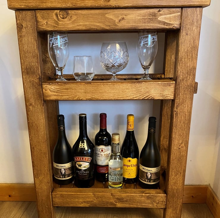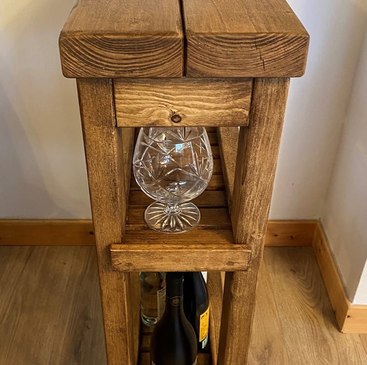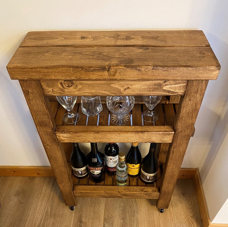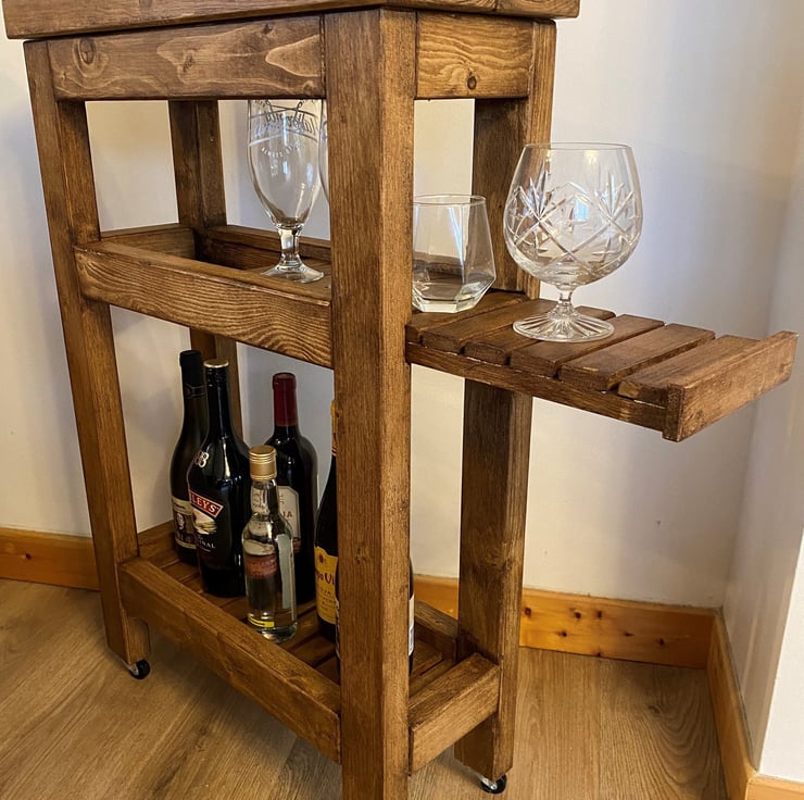 This slimline variation of our standout, handmade kitchen trolley has been imaginatively designed to fit into tight spaces in your home and wonderfully suited for carrying a plethora of beverages and liquid refreshments. Crafted from new, sustainable pine wood; this item Includes a sliding shelf and castors for those looking for a highly mobile, versatile and efficient kitchen feature.