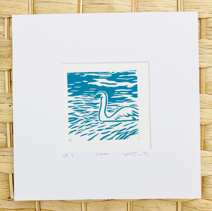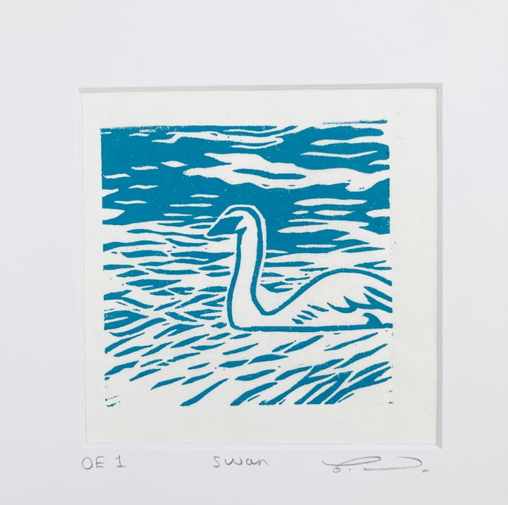 Swan Lino print, swan print, bird Lino print, bird print, British bird print,