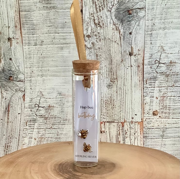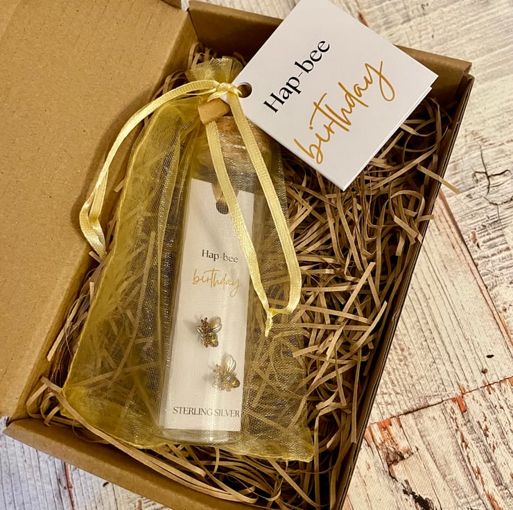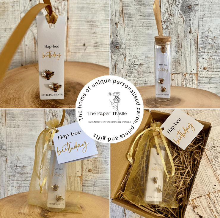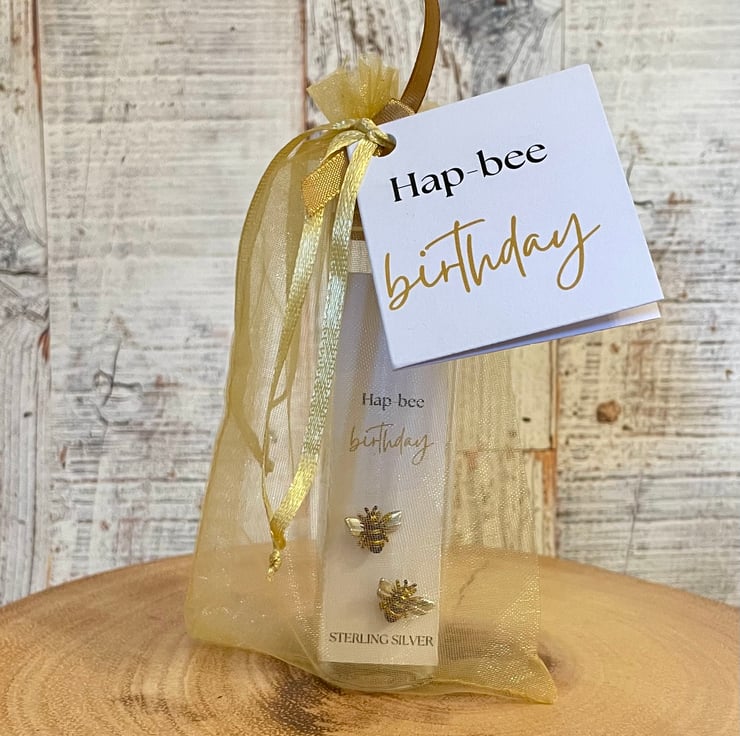 The special message with these earrings is ‘hap-bee birthday’, these words can be changed to create your own message. a lovely gift to say thank you, for a birthday, anniversary, Mother's Day or Valentine's Day. Great to give friends, bridesmaids, sisters, mothers or daughters.