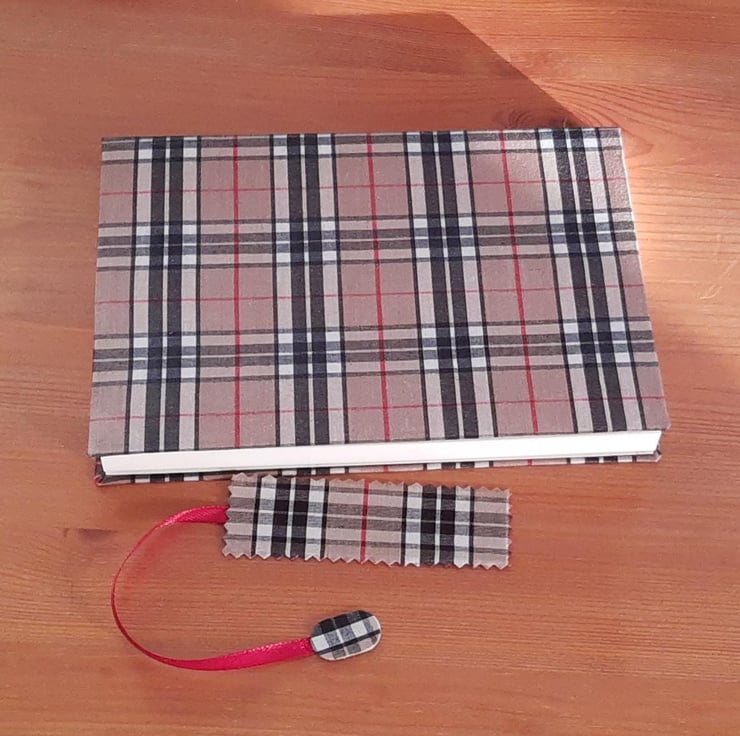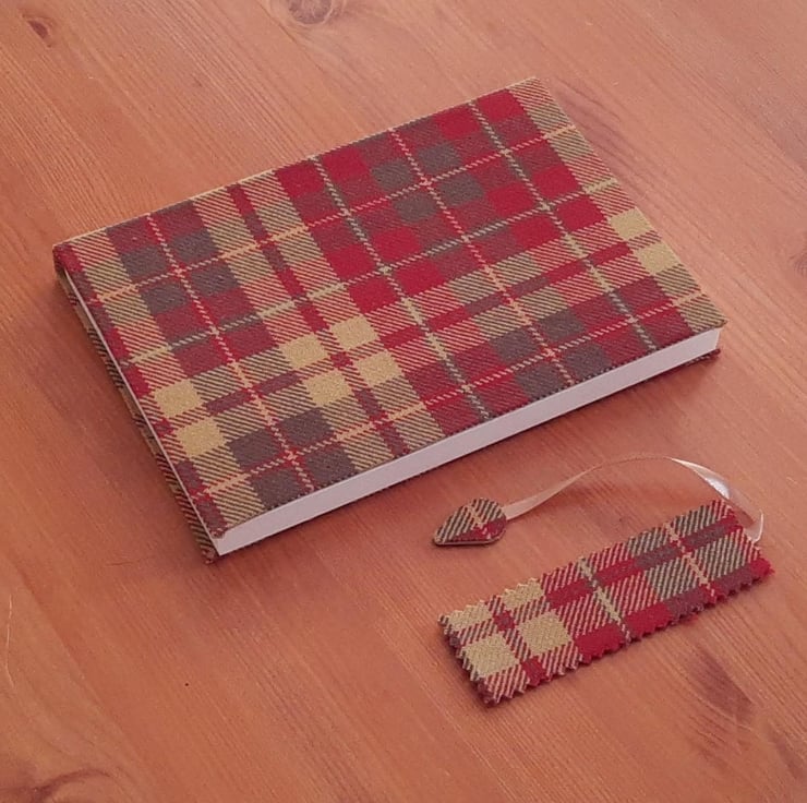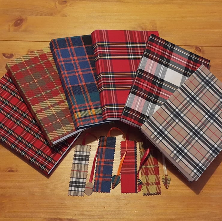 Creativity meets style with our classic Scottish Tartan Fabric Cover Journal, a perfect companion for your thoughts, sketches, and inspirations. Handcrafted with love, each journal features a unique fabric cover that showcases an array of stunning tartan colors and patterns. Designed in a convenient A5 format, this journal houses 100 ivory pages (200 sides) that are available in your choice of plain or lined layouts, making it suitable for journaling, note-taking, or doodling. Each journal comes with a matching, beautifully crafted bookmark, ensuring you never lose your place in your creative journey. Elevate your writing experience with this stylish and functional journal that perfectly blends artistry with practicality. Whether for personal use or as a thoughtful gift, our Handmade Fabric Cover Journal promises to be a treasured keepsake for years to come.