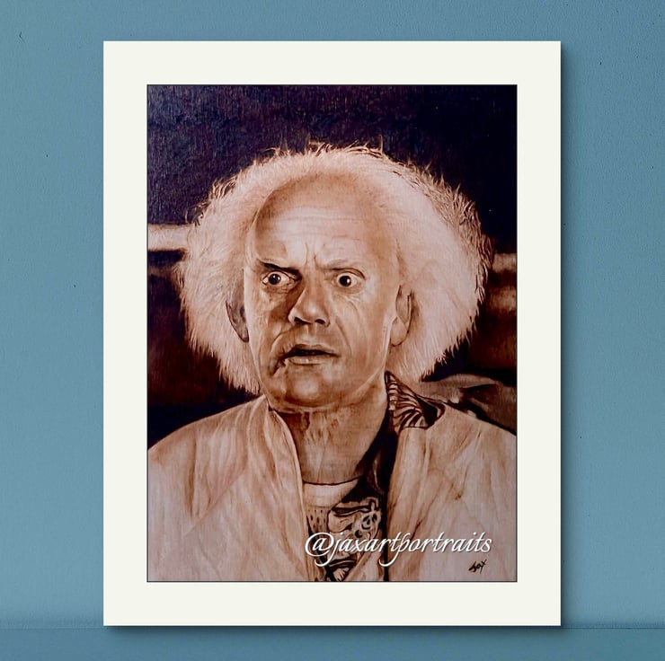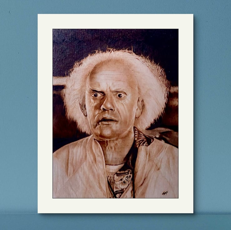 Bring the spirit of adventure and invention into your home with this bespoke Doc Brown pyrography portrait — a truly unforgettable gift or personal keepsake.