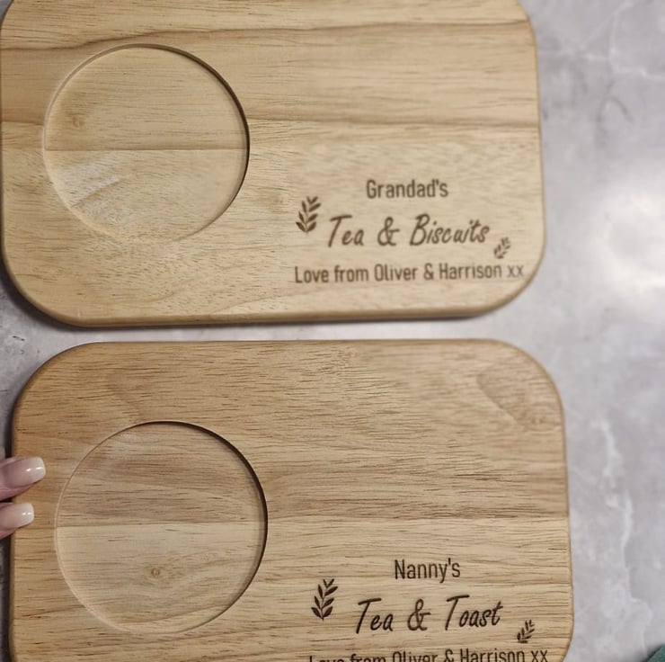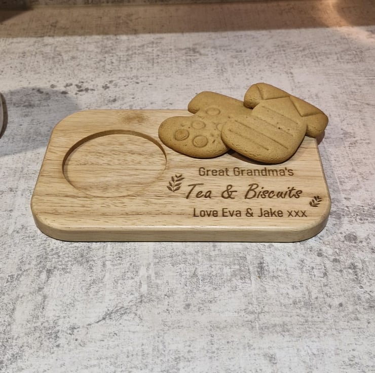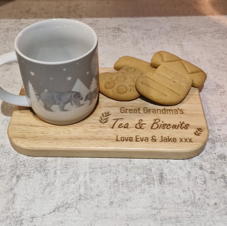 Personalised biscuit board, perfect for serving a tasty treat with a cup of tea or coffee. These biscuit serving boards are personalised and engraved to order, so every item will be unique.