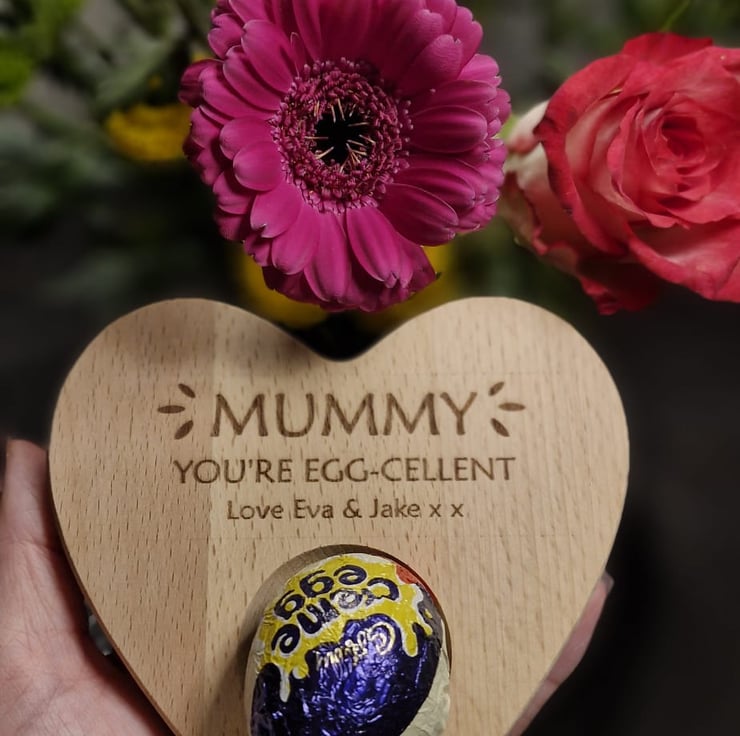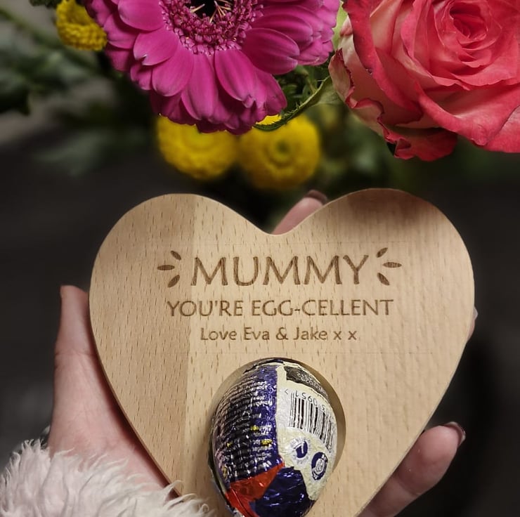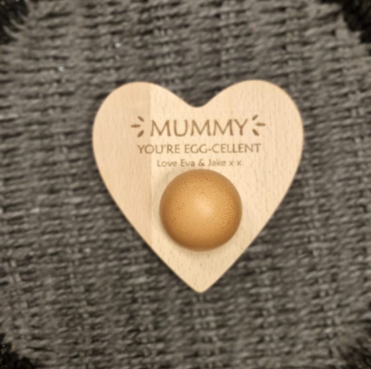 A heart shaped egg holder made from quality beech wood. This is a versatile gift which can be given in almost any occasion, especially valentines and easter. The egg and unfortunately the chocolate egg is not included (which is a good job as I have already eaten it). The heart wood heart is milled and the text is lasered.