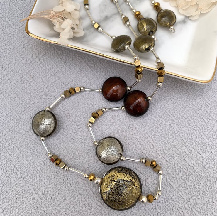 Foil Lampwork Glass Bead Necklace Set