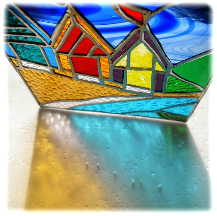 I've used some lovely textured glass to give it movement and the sea is all textured and some iridescent glass to make it shimmer.