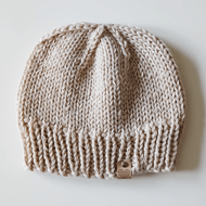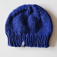 This hand knit PATTERN is for a winter beanie hat. To fit: child (adult): circumference: 48 (52) cm, 19 (20.5) inches. The hat is knitted using double knitting yarn (used treble) using 10 and 12 mm knitting needles and is knit flat and seamed.