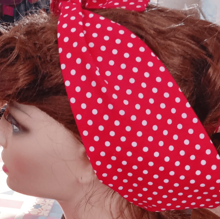 1950s Retro Rockabilly Headscarf Handmade red & white Polka dot Print
