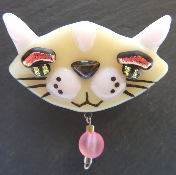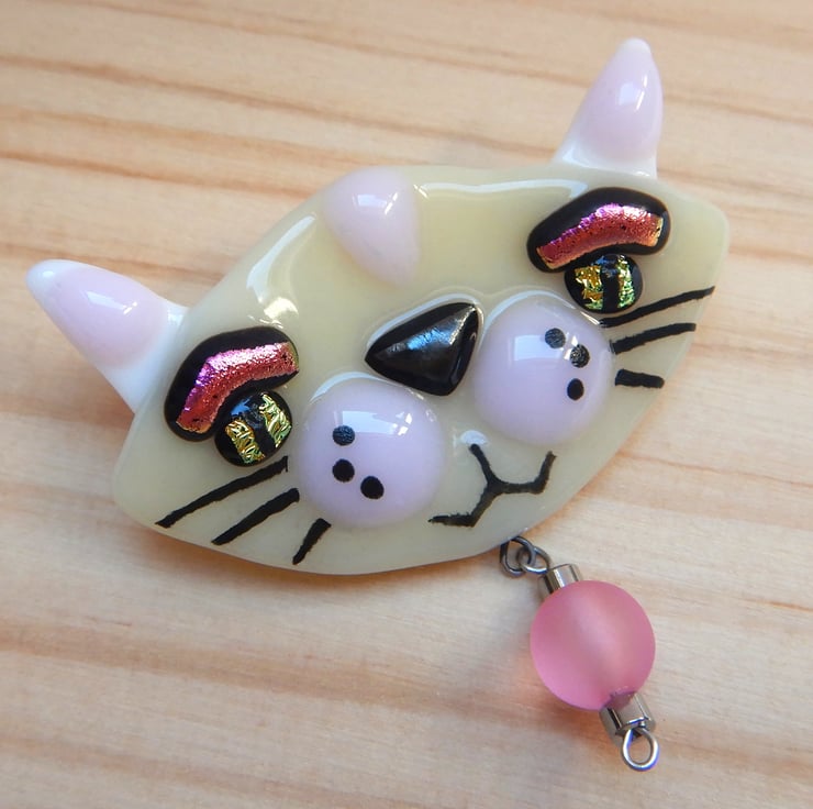 Handmade Fused Glass Cat Brooch.