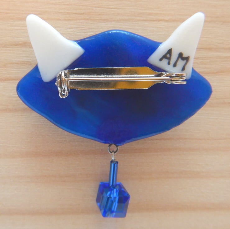 The stainless steel loop, wire, and bead have been fused into the body of the cat, making it impossible to break or fall off. The brooch back is a high quality 3M catch.