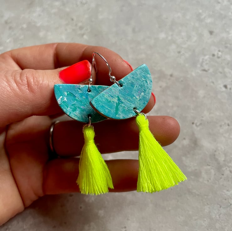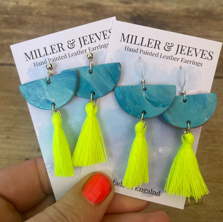 Introducing our Bright & Breezy Sea Breeze Hand-Painted Leather Earrings—a delightful blend of colour and craftsmanship, designed to add a cheerful touch to any ensemble. Handcrafted in my Oxfordshire workshop, each pair is unique ensuring no two are exactly alike.