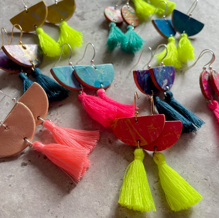 I was inspired to create these earrings by the vibrant energy of summer – the bright colors, the carefree vibe, and the joy of expressing yourself through playful, bold accessories. Using off-cuts of leather in my designs allows me to be more sustainable while adding a unique, personal touch to each piece. I love the idea of turning these off-cuts into something beautiful and versatile enough to wear from day to night. Each pair is handcrafted to reflect the individuality of the wearer, making them as special as the person who wears them.