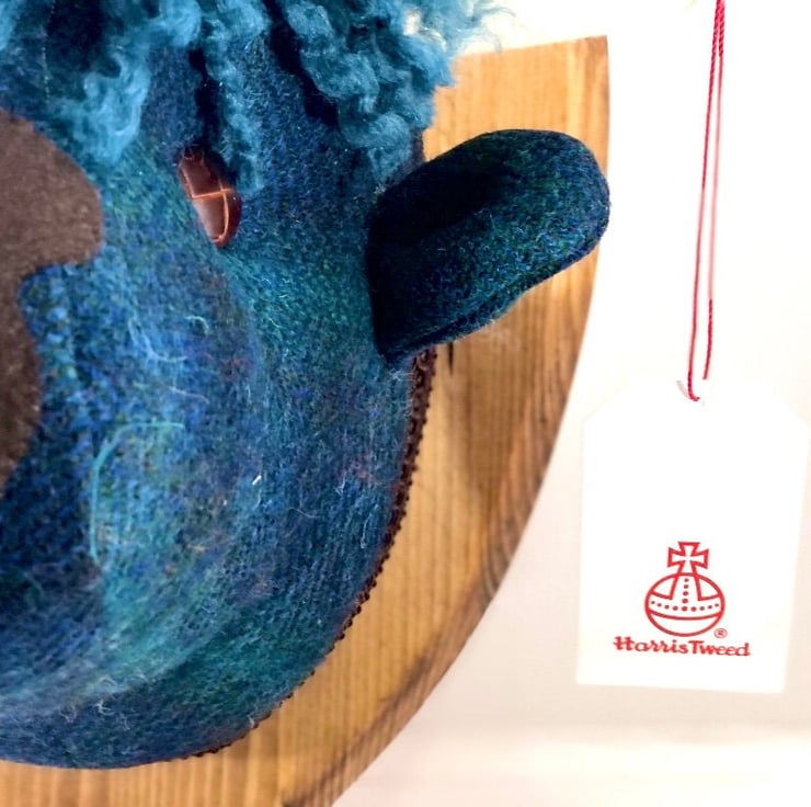 The cow head sculptures are made from a combination of Harris Tweeds, wool tartans