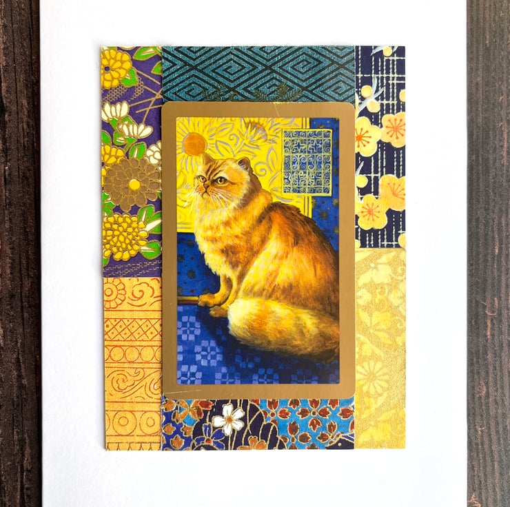 Cat card, blank handmade card for cat lover, card to frame