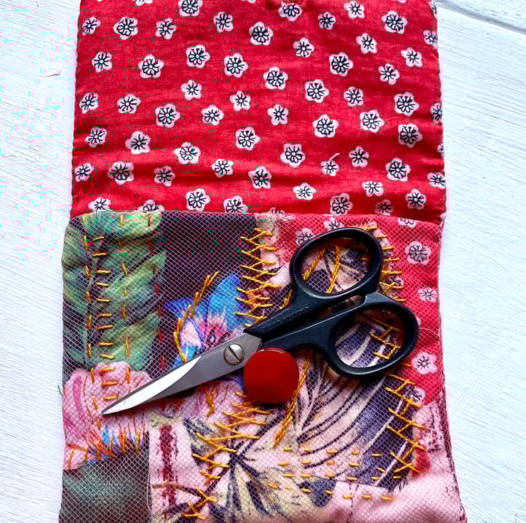 Measuring 5x4.5 inches it will hold sewing notions, sanitary wear, coins or special keepsakes.