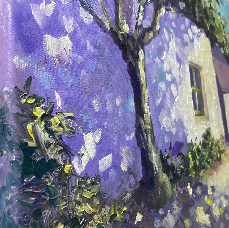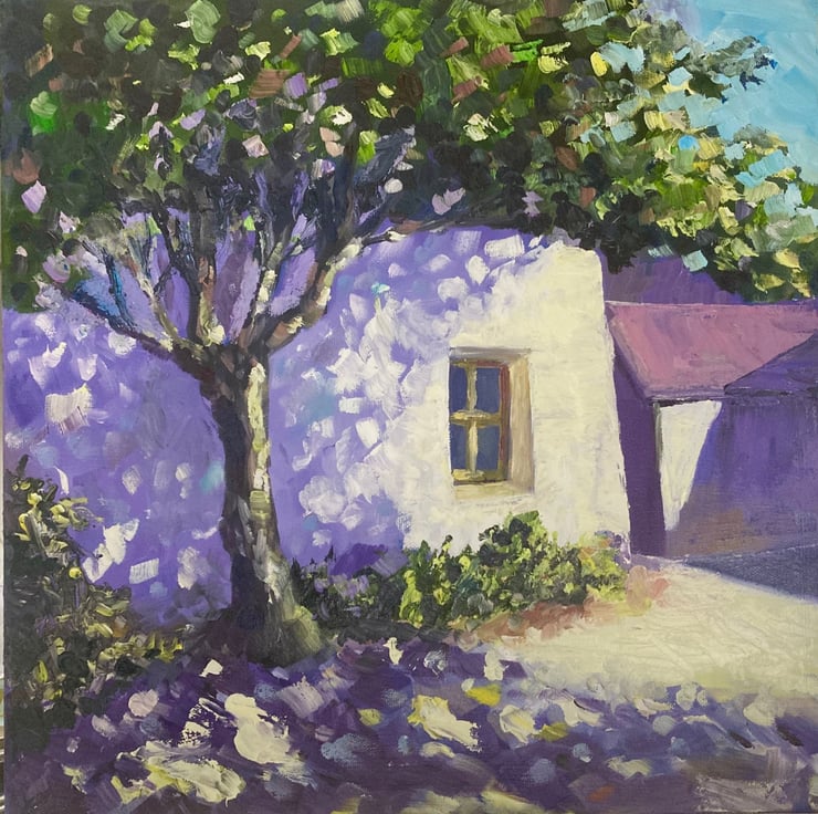 We saw many beautiful buildings and this is developed from sketches of a few places. I have used those distinctive lilacs and yellows associated with the French impressionists, while trying to keep the brush strokes lively and bold.