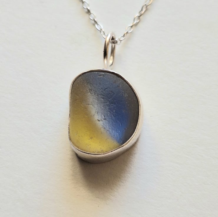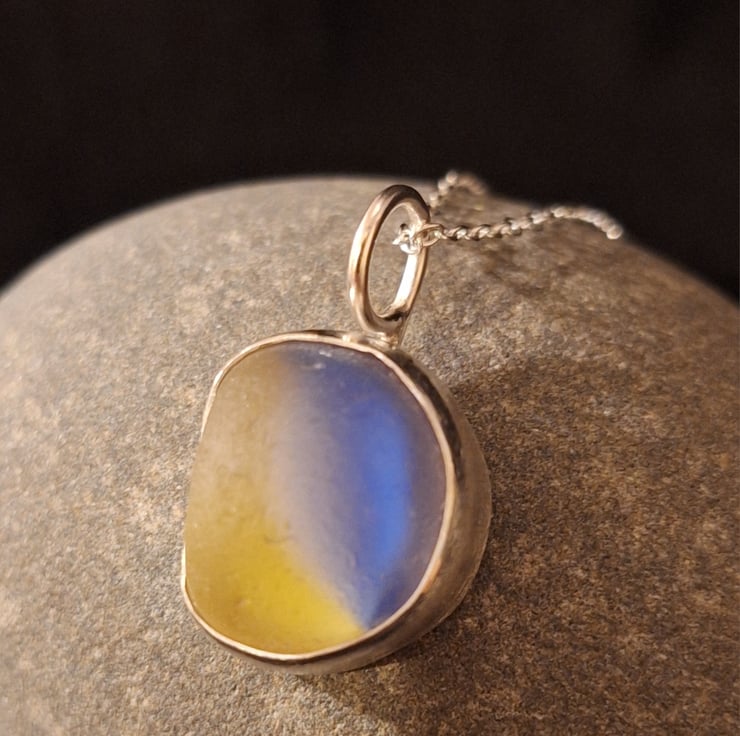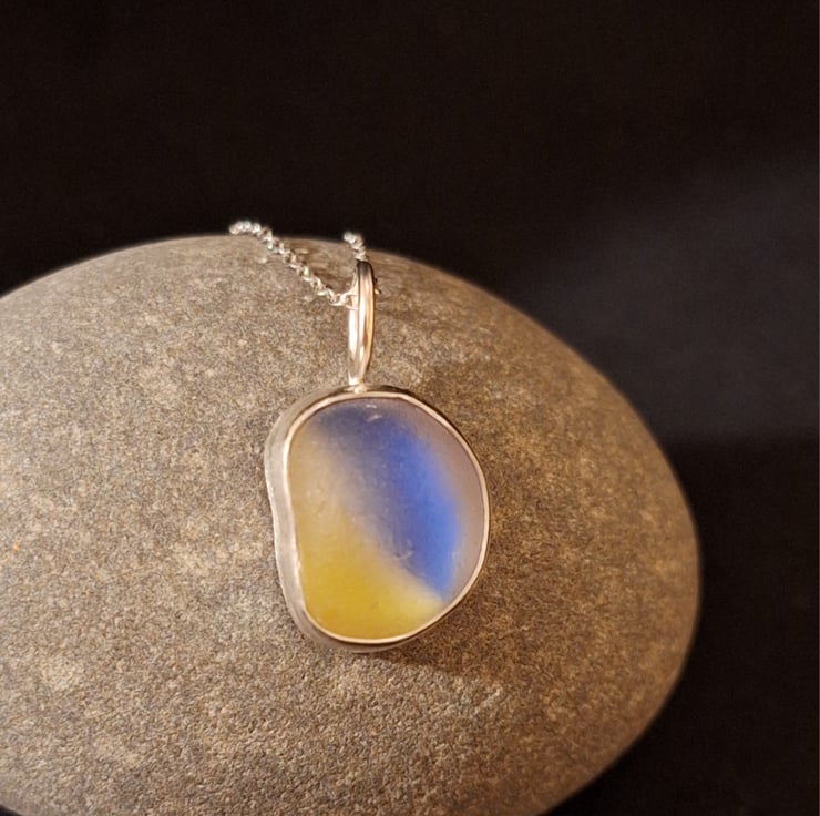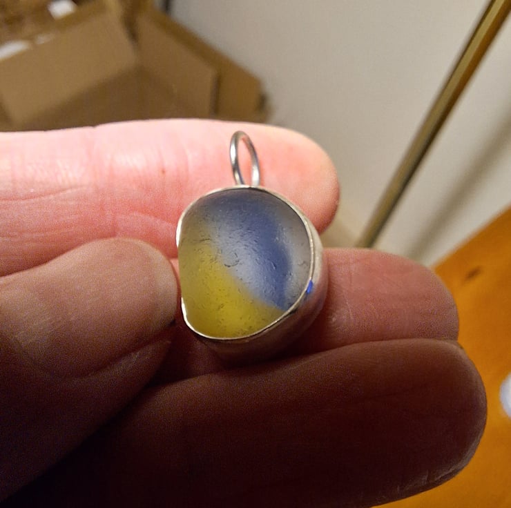 This is a gorgeous piece of seaglass - found on La Graciosa, Lanzarote at the beginning of the year. It's approx 2.3cm long including the silver bail. The depth is about 8mm so it's nice and chunky. Set in silver - I think this probably started off life as a marble.