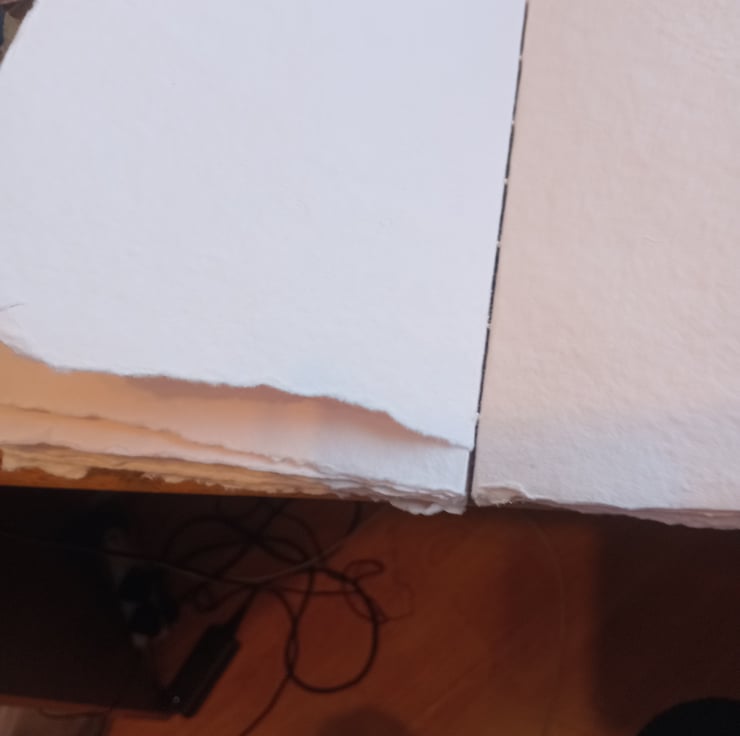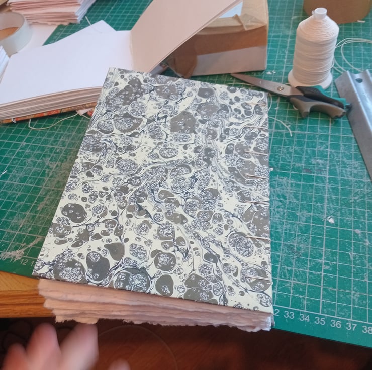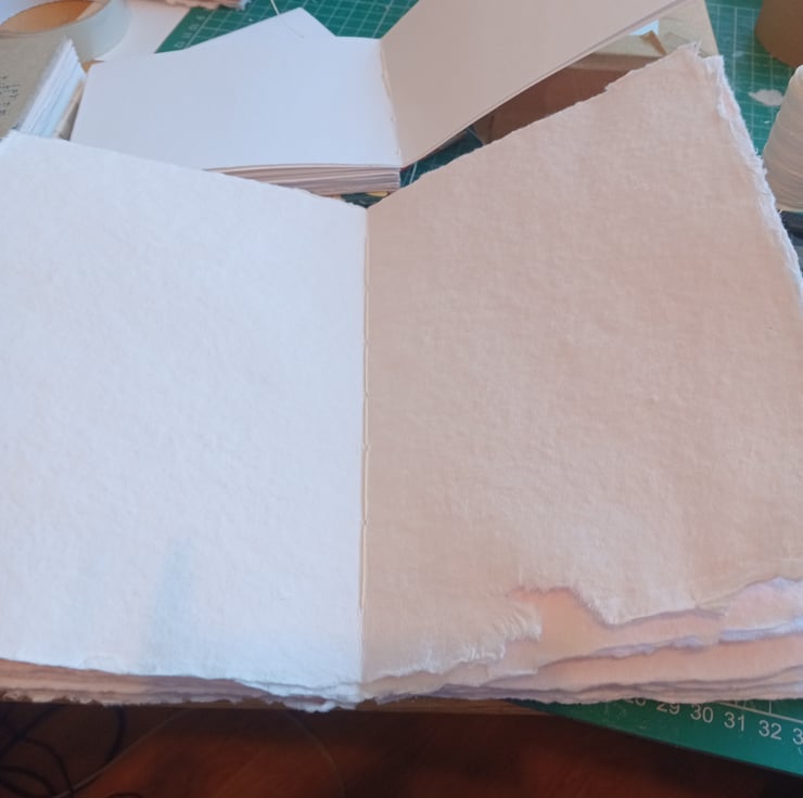 Handmade coptic stitch A5 watercolour sketchbook. Imperfectly made - see photos for where pages are not quite right, hand torn 250 gsm Indian cotton rag paper and linen thread.
