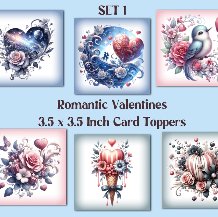 A set of six 3.5 inch square card toppers - Romantic Valentine's